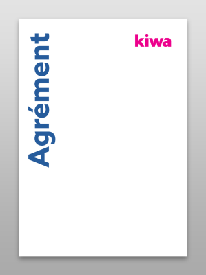 The certificate will feature the Kiwa logo applied in glossy foil stamping. In the preview, the designated area is indicated by a red logo. Please note that this red logo will not appear on the final certificate; it is shown for reference purposes only to indicate the foil-stamped area.