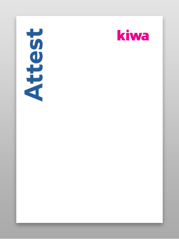 The certificate will feature the Kiwa logo applied in glossy foil stamping. In the preview, the designated area is indicated by a red logo. Please note that this red logo will not appear on the final certificate; it is shown for reference purposes only to indicate the foil-stamped area.