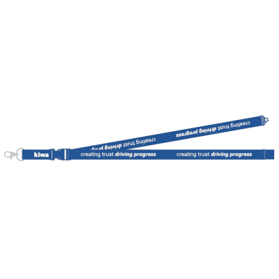 Polyester lanyard with standard silver hook, safety clasp and plastic buckle.